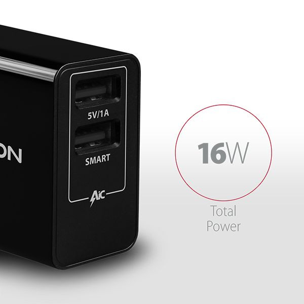A SMART töltő akár 16 W-ig, azaz 5V/3.2 A-ig is képes teljes energiát biztosítani, akár egyetlen portról.