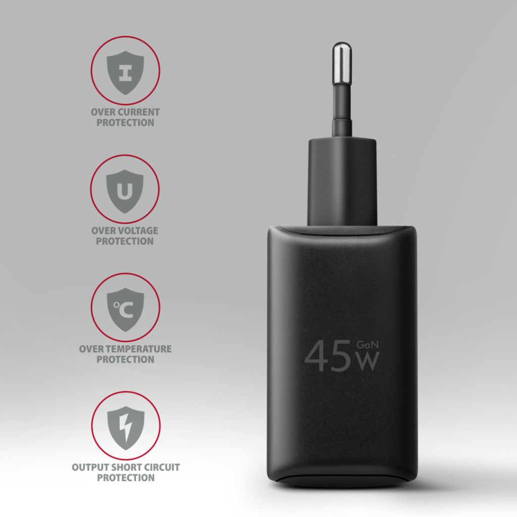Az Kompakt méretet és a nagy teljesítményt az alkalmazott új GaN technológia adja. A gallium-nitriddel használt alkatrészek nagy hatékonysággal működnek, ami lehetővé teszi, hogy kis méret mellett nagy teljesítményt érjen el. A töltő Power Delivery 3.0 / Quick Charge 4+ USB Type-C kimenettel és egy Quick Charge 3.0 USB Type-A kimenettel rendelkezik, így nemcsak okostelefonok és táblagépek, hanem kis laptopok gyors töltését is lehetővé teszi, akár 45W-os teljesítménnyel.