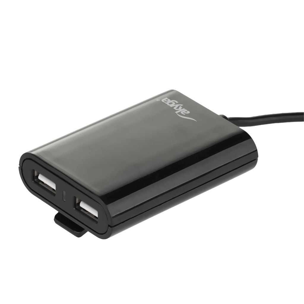 Az Akyga® AK-CH-10 egy univerzális, kétzónás USB autós töltő, 45 W teljesítménnyel és 5 V / 4,2 + 4,8 A paraméterekkel. 4 (2+2) USB porttal rendelkezik, amelyből kettő a szivargyújtónál, kettő pedig a 1,8 méter hosszú hosszabbító végén található. Ez az ideális utazási töltési megoldás, különösen hátsó ülésen utazók számára.