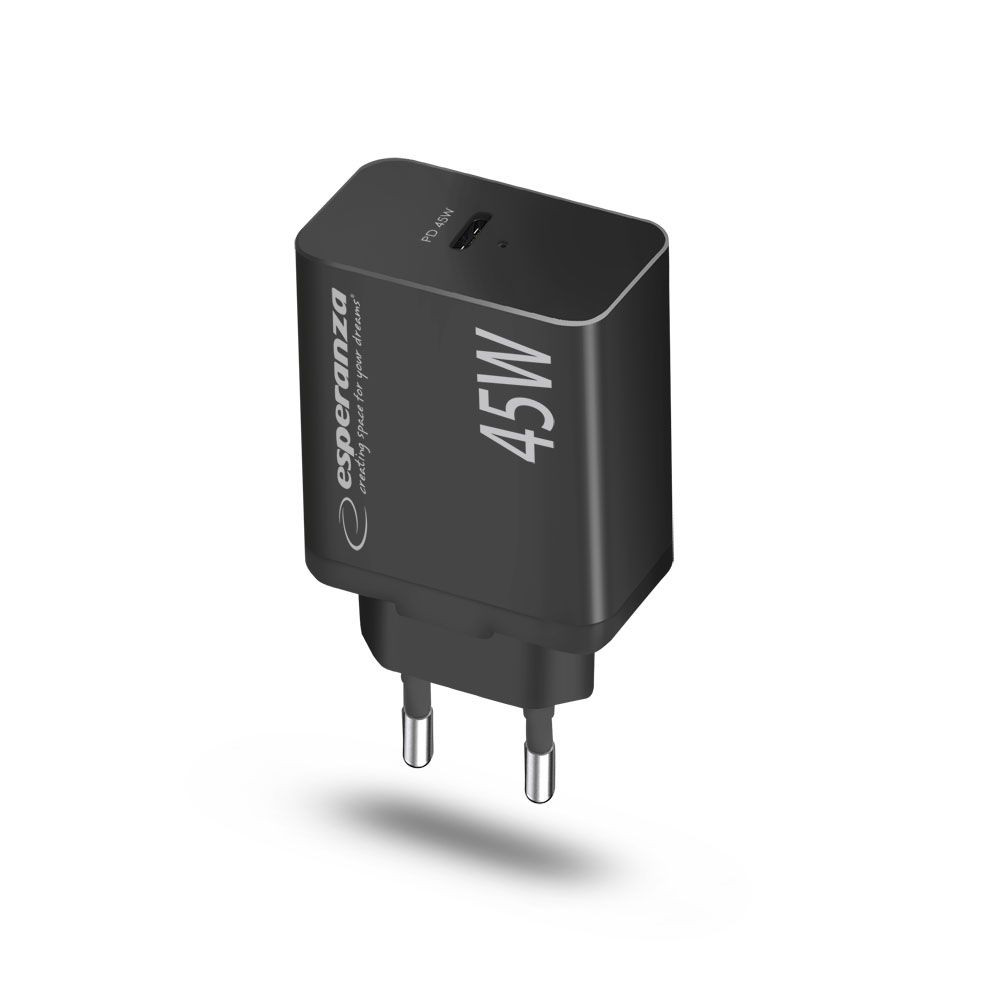 Ez a nagy teljesítményű, akár 45 W-os teljesítményű Esperanza gyorstöltő lehetővé teszi, hogy az eszközök akár háromszor gyorsabban töltődjenek, mint a hagyományos töltők. Kompatibilis a legtöbb okostelefonnal, táblagéppel és más, USB-C kábellel táplált eszközzel. A több biztonsági funkcióval ellátott töltő megvédi magát és eszközeit is az esetleges károsodástól. Széles bemeneti feszültségtartományával (110-240 V) különböző országokban is használható. Kompakt méretének köszönhetően ideális utazási kiegészítő. A töltő és a csatlakoztatott eszközök védelmének biztosítása érdekében fejlett védelmet biztosít a túlmelegedés, a rövidzárlat és a túlterhelés ellen. Egy intelligens chip automatikusan beállítja az áramszintet, hogy optimalizálja az egyes készülékek töltését.