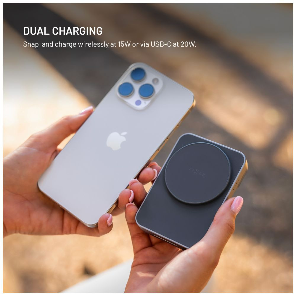 A 5000 mAh kapacitású FIXED MagZen 5 Stand power bank gyors töltést biztosít készülékeinek, bárhol is legyen. A beépített MagSafe mágneseknek köszönhetően könnyedén rögzítheti az iPhone 12 és újabb modellek hátuljához, vagy bármely MagSafe tokot használó telefonhoz. A rögzítés után a töltés automatikusan elindul, akár 15 W teljesítménnyel (iOS esetén 7,5 W). Ha telefonja nem támogatja a MagSafe-et, a töltőfelületet vezeték nélküli töltőpadként is használhatja. A vezeték nélküli töltés mellett USB-C porton keresztül akár 20 W teljesítményű gyors vezetékes töltést is kínál. Beépített felhajtható töltő is található az Apple Watch számára, így egyszerre akár három eszközt is tölthet. A power bank 5000 mAh-s kapacitása elegendő a nap folyamán történő folyamatos töltéshez, és a power bankot magát USB-C csatlakozón keresztül, akár 18 W teljesítményű töltéssel is feltöltheti. A megemelt MagSafe felületnek köszönhetően a telefon stabilan a helyén marad, függetlenül attól, hogy függőleges vagy vízszintes helyzetben van. A praktikus fém állvány kényelmes dőlésszöget biztosít a telefonnak töltés közben, ami ideális videók nézéséhez, videohívásokhoz vagy munkához. Ha pedig a power bankot a töltőhöz csatlakoztatja, akkor egy teljes értékű töltőállomást kap minden eszközéhez – ideális megoldás az íróasztalra vagy az éjjeliszekrényre. A tartós alumínium testet puha szilikon felületek egészítik ki, amelyek megvédik az eszközt a karcolásoktól és biztosítják a biztonságos használatot. A FIXED MagZen 5 Stand power bankkal biztos lehet benne, hogy mindig elegendő energiája lesz kéznél.