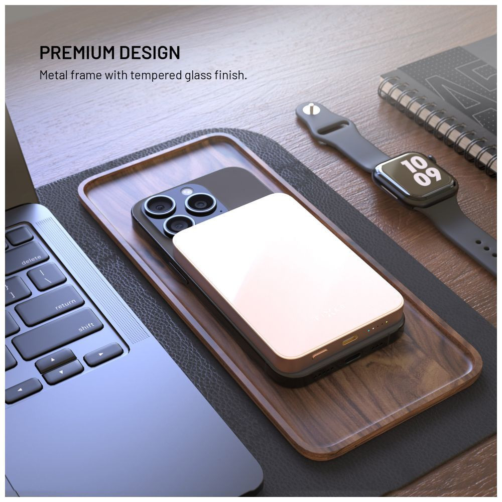 Az 5000 mAh kapacitású, Qi2 tanúsítvánnyal rendelkező FIXED MagZen 5 Crystal power bank gyors és hatékony töltést biztosít minden olyan telefon számára, amely támogatja ezt a technológiát. A beépített MagSafe mágneseknek köszönhetően könnyen rögzíthető a 12-es és újabb iPhone-ok hátlapjára, illetve a kompatibilis MagSafe borítással rendelkező telefonokra. A csatlakoztatást követően a töltés automatikusan megkezdődik, akár 15 W-os teljesítménnyel. Ha a készüléked nem támogatja a MagSafe-t, a power bank klasszikus vezeték nélküli töltőpadként is használható. A power bank támogatja a gyorstöltést is az USB-C porton keresztül, akár 20W-os teljesítménnyel. Ez lehetővé teszi, hogy egyszerre két eszközt töltsön - vezeték nélkül 5W-os, USB-C porton keresztül pedig 10W-os teljesítménnyel. Az 5000 mAh kapacitás egy-két telefontöltésre elegendő, és négy LED világosan jelzi a kapacitás állapotát. A készüléktest fémkeretet és edzett üveget kombinál, a töltőoldalon matt felületű, a telefon karcolásoktól való védelme érdekében. A mindössze 9,4 mm-es, vékony kialakításnak köszönhetően a készülék elvegyül a telefonoddal, és kényelmesen elfér a zsebedben. A FIXED MagZen 5 Crystal egy könnyű, stílusos és praktikus megoldás a mindennapi töltéshez útközben.