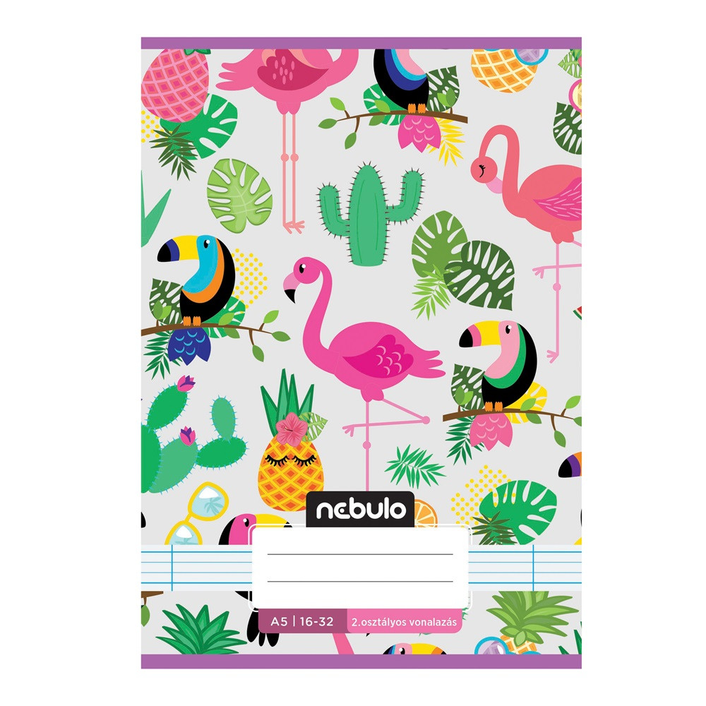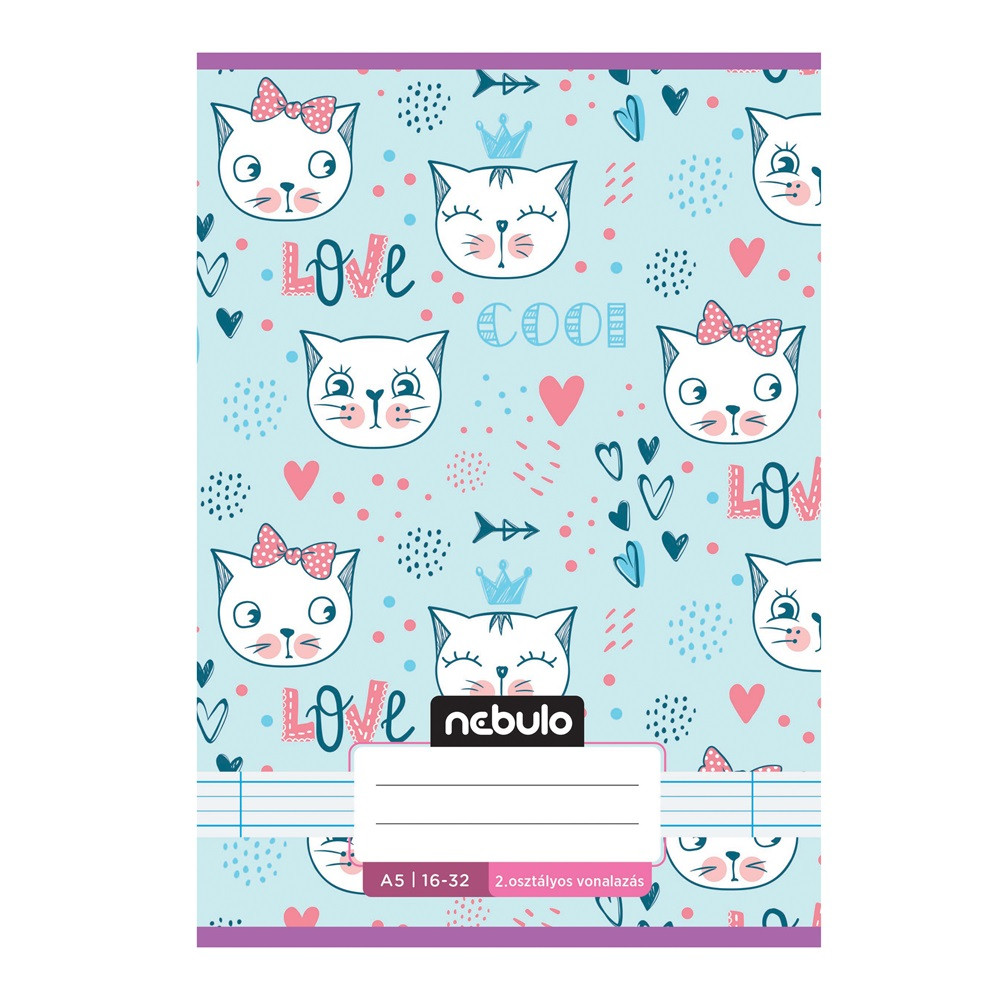 Füzet, A5, 2. osztályos vonalas, 16-32, Cuki minták, 16 db/csomag Nebulo