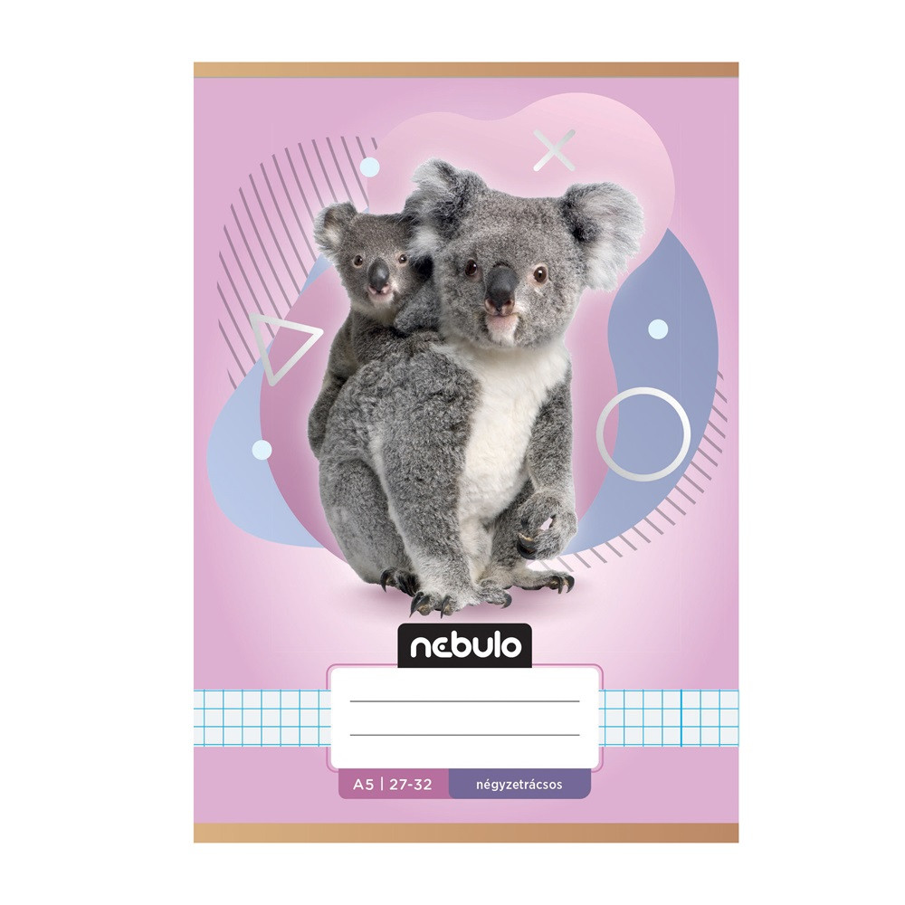 Füzet, A5, kockás, 27-32, Állatos minták, 16 db/csomag Nebulo