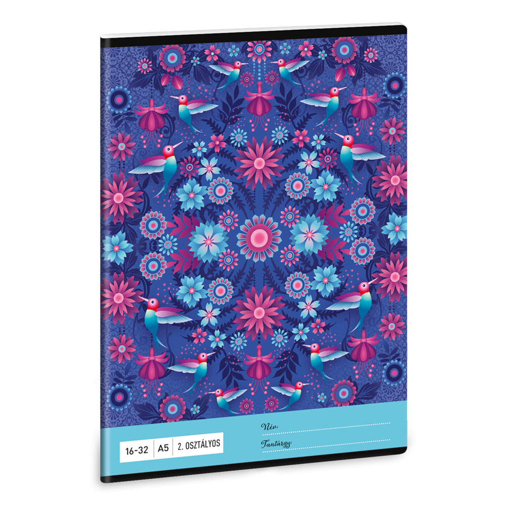 A/5-ös méretű, vonalas füzet 2. osztályos szabványos vonalazással. 32 lapos, belseje 75 gr-os papírból. Borítója 250 gr-os műnyomó kartonra lekerekített sarkokkal, fényes fóliázással, 4 szín nyomással készült.
