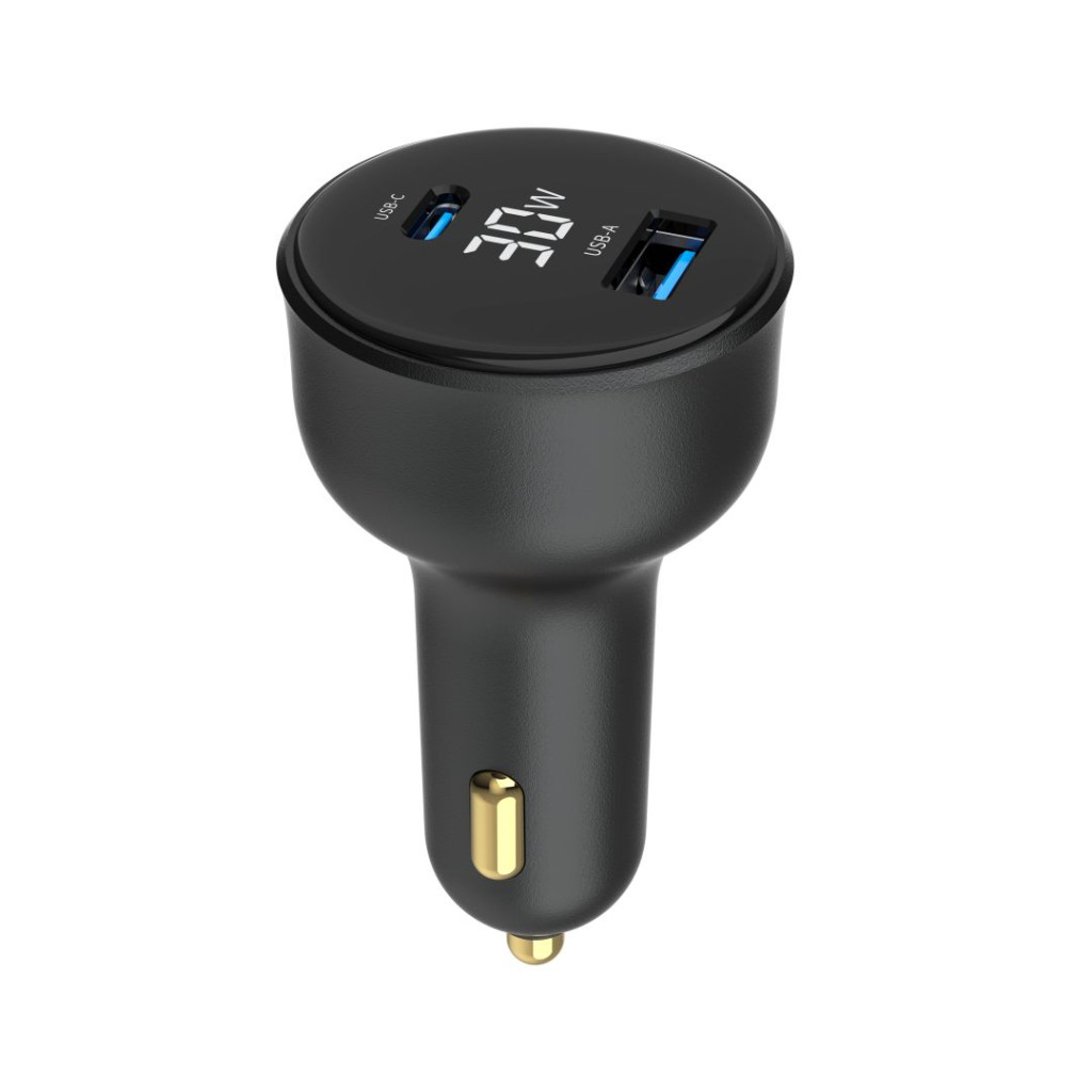 Gembird 2-Port USB Car Fast Charger Type-C PD LCD 30W Black