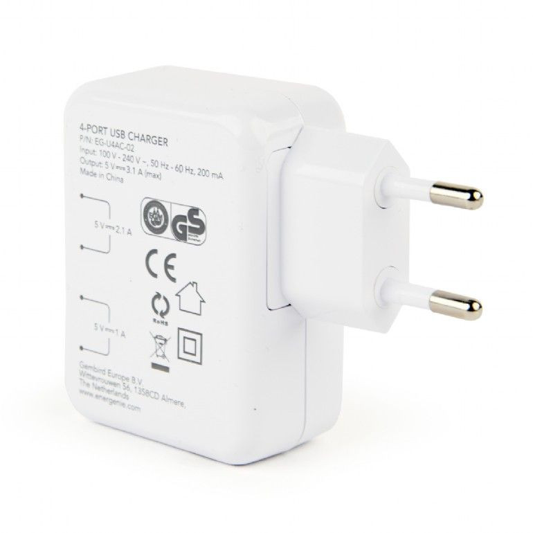Gembird EG-U4AC-02 Universal USB Charger White