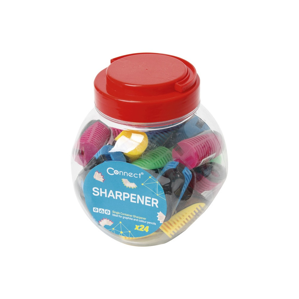 Hegyező 1 lyukú műanyag, tartályos Connect különféle színek