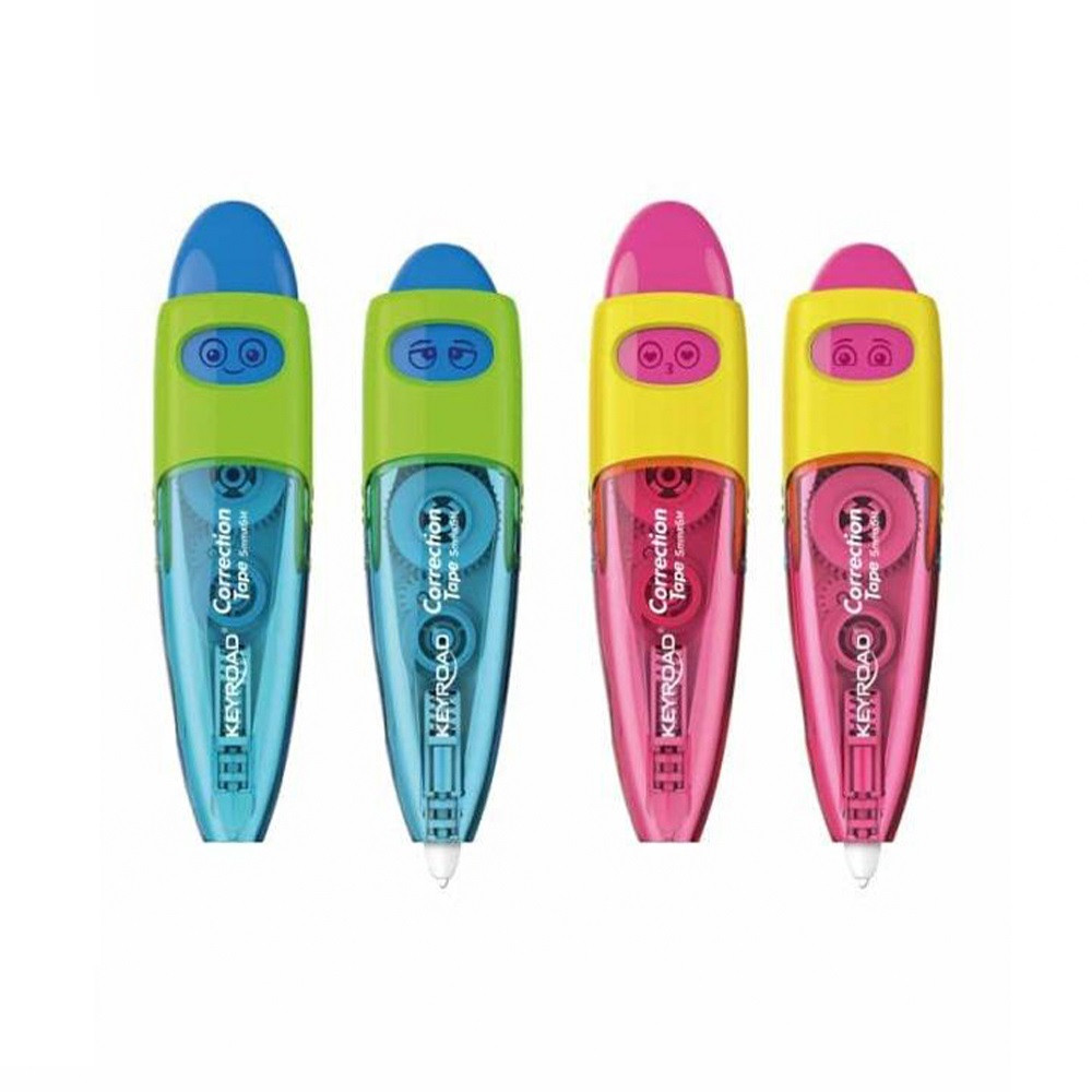 Érzelmekkel teli hibajavítás! nyomógombos hibajavító, a tartósabb használatért, védett végződéssel mókás arcok használat közben hatékony, szuper sima fedés tartós PET szalaggal 5 mm X 6 m lehelet vékony, könnyen újraírható réteg a javítandó felületen vegyes színekben (rózsaszín, kék), a szín nem választható 1 db/bliszter