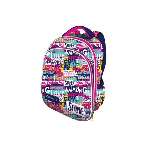 iskolai hátizsák; rendkívül könnyű; méret: 32x41x18 cm; anatómiai; ergonomikusan kialakított hátlap lehetővé teszi a légáramlást; anatómiailag formázott széles vállpántok; hevederek beállítása; erősen fényvisszaverő, kemény alj; elől cipzáros zseb; rekeszek az oldalakon. Katalóguskód: 34402