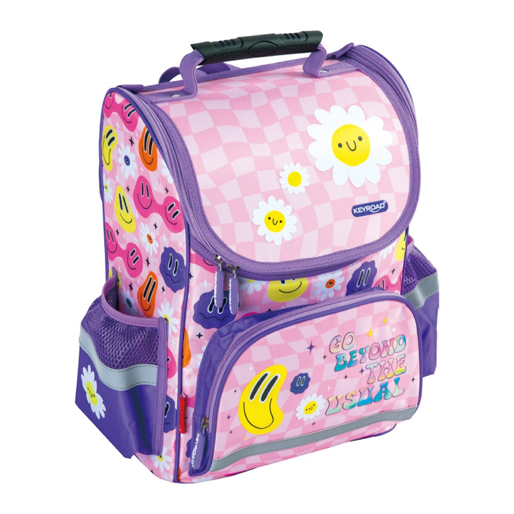 egyrekeszes kompakt iskolatáska belső textil elválasztó fallal és egy plusz cipzáros hátsó tárolórésszel