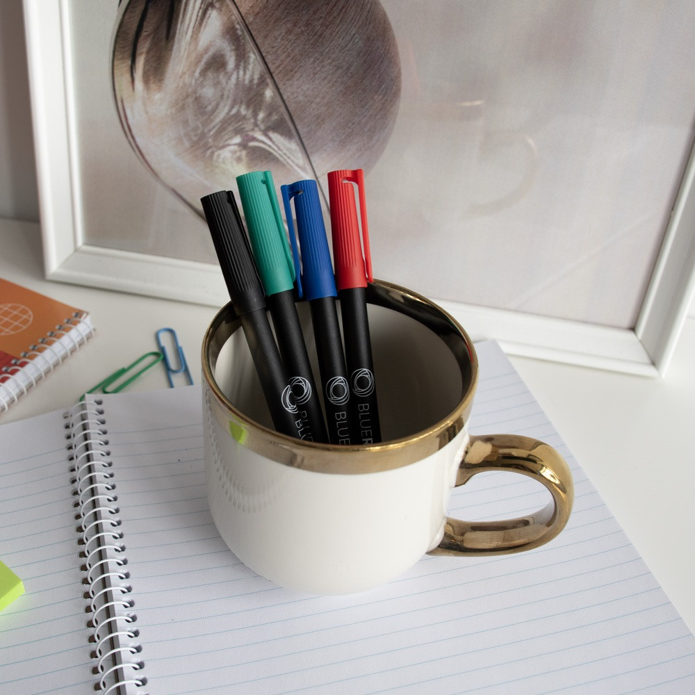 A készlet 0,5 mm vastagságú írást biztosít, ami ideális különféle anyagok jelöléséhez is mivel tartós alkoholos tintát tartalmaz.