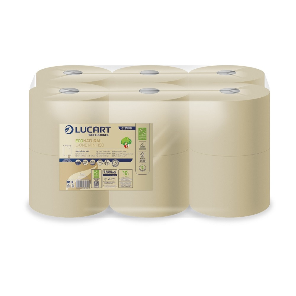 Toalettpapír 2 rétegű közületi átmérő 18,2 cm laponkénti adagolás 12 tek/csom EcoNatural L-ONE MI Lucart_812506 havana