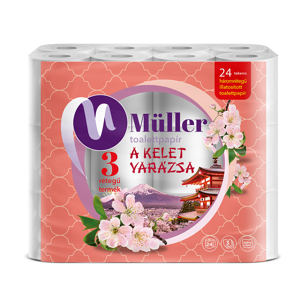 Toalettpapír 3 rétegű kistekercses 100% cellulóz 100 lap/tekercs 24 tekercs/csomag Kelet Varázsa Müller fehér