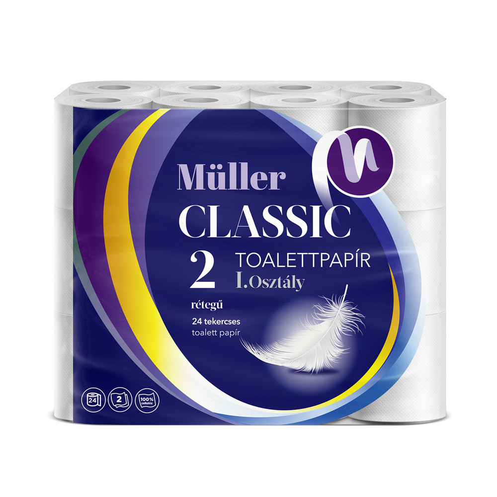 Kiszerelés: 24 tekercs / csomag, 3 csomag / karton, 24 karton / raklap