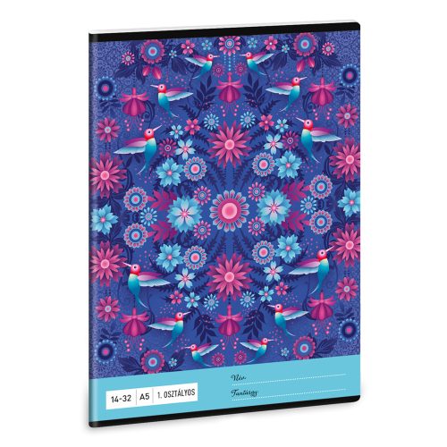 A/5-ös méretű, vonalas füzet 1. osztályos szabványos vonalazással. 32 lapos, belseje 75 gr-os papírból. Borítója 250 gr-os műnyomó kartonra lekerekített sarkokkal, fényes fóliázással, 4 szín nyomással készült.